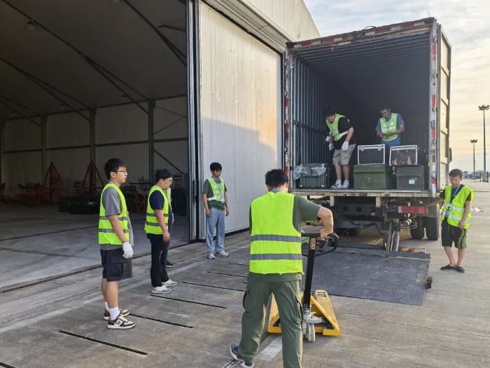 预警机所项目团队面对台风威胁,提前部署、高效行动,克服港口停航停运带来的困难,在外场顺利完成数十箱重型设备的装箱转场与系统调试等一系列工作。