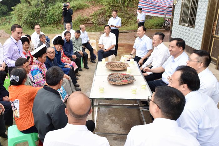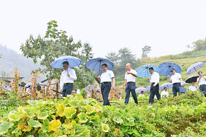 在白腊苗族乡高峰村,陈肇雄一行实地查看了“支部共建、结对帮扶”机制落实情况,听取了村委会发挥“党建扶贫综合阵地”作用,为党员活动、技术培训、农产品上网、乡村医疗等提供“硬件”条件,帮助提升党建、民生服务和智慧农牧业的情况介绍,鼓励大家要用好信息技术手段提高本领。